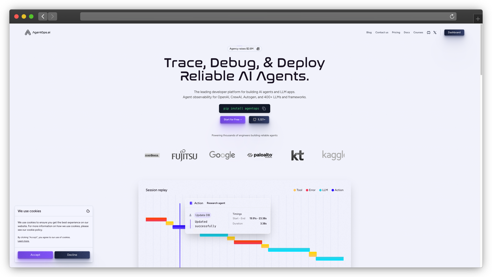 AgentOps is purpose-built for agent observability. It tracks agent decisions, tool usage, and multi-step reasoning patterns that general LLM observability tools miss.