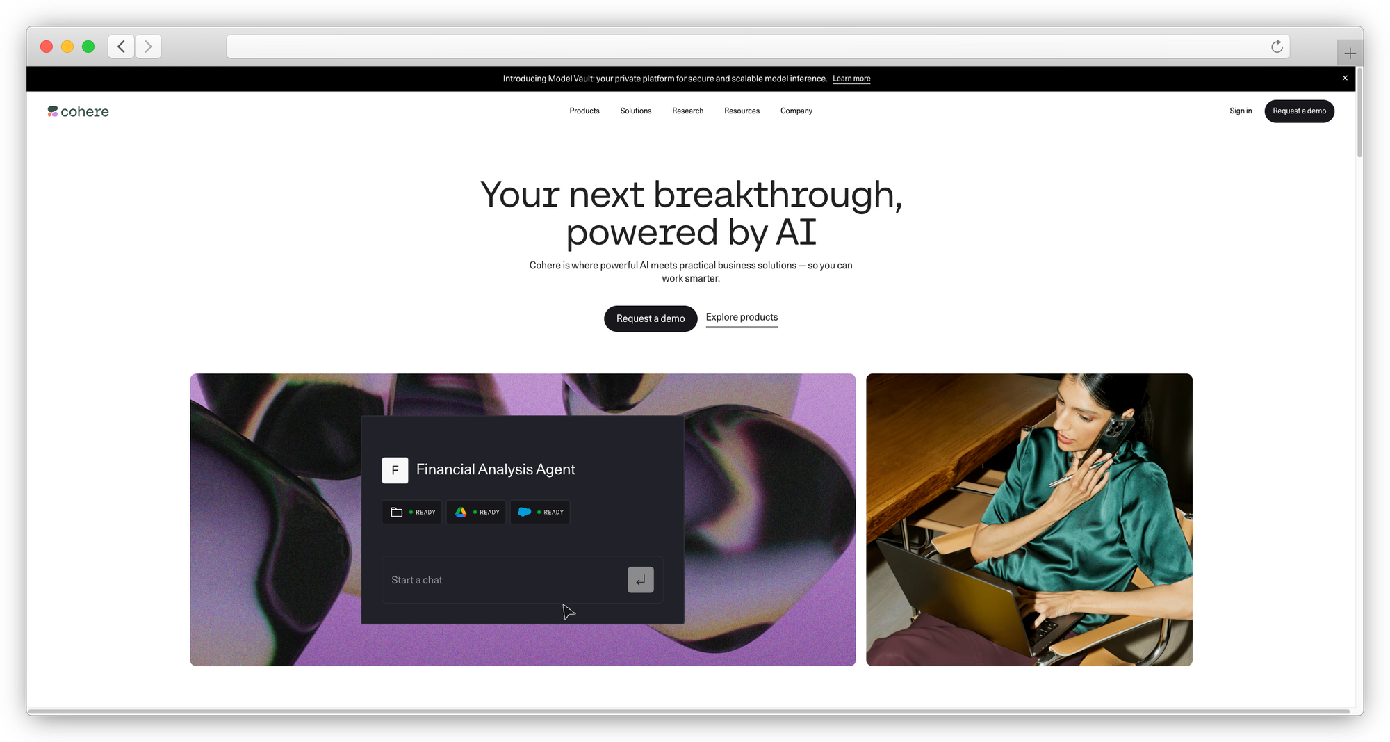 - AI Capabilities: Command models, Embed, Rerank, RAG pipeline