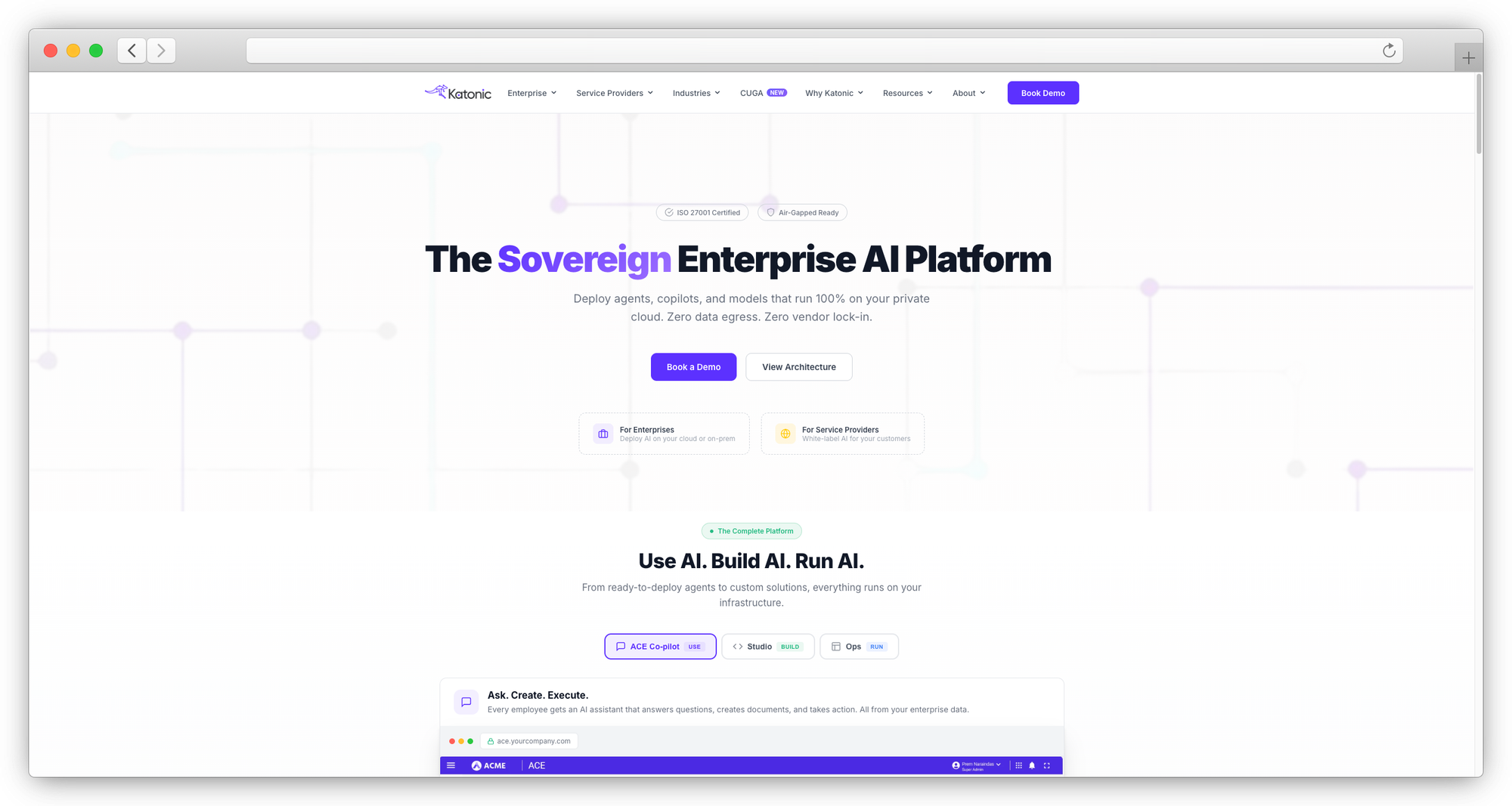 A sovereign AI platform designed for air-gapped operations from day one. Katonic uses a zero-egress architecture where nothing leaves the deployment perimeter. The platform supports open-weight models (Llama, Mistral, Falcon) with local fine-tuning and a full-stack agent architecture (Brain + Body + Guardrails). A SUSE partnership extends their reach into APAC/ANZ markets. Typical deployment timeline: 2 weeks to first app, 30-60 days for full platform rollout.