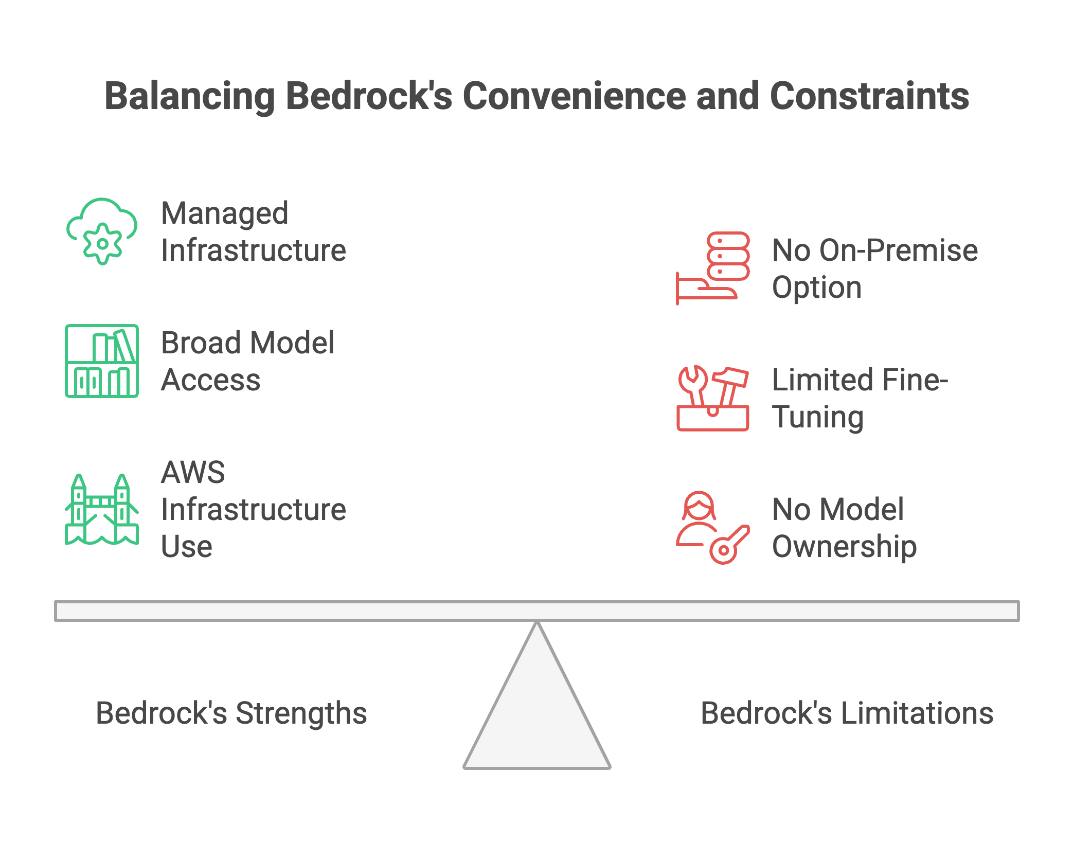 - VPC isolation satisfies your compliance needs. Not every organization needs on-premise. If your security team is comfortable with AWS region-level isolation and encrypted processing, Bedrock's compliance certifications cover most requirements.