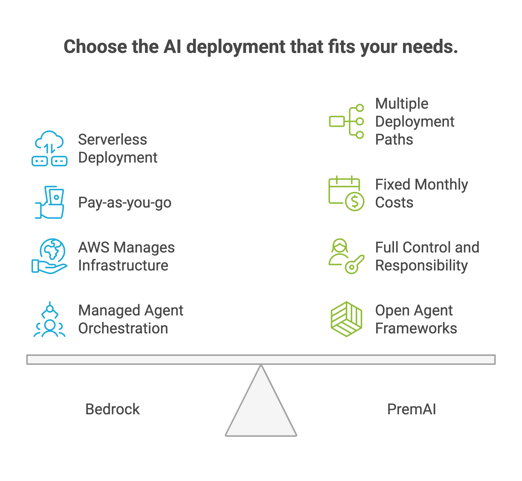 Bedrock optimizes for speed-to-first-response. PremAI optimizes for long-term AI infrastructure ownership. Different goals, different architectures.