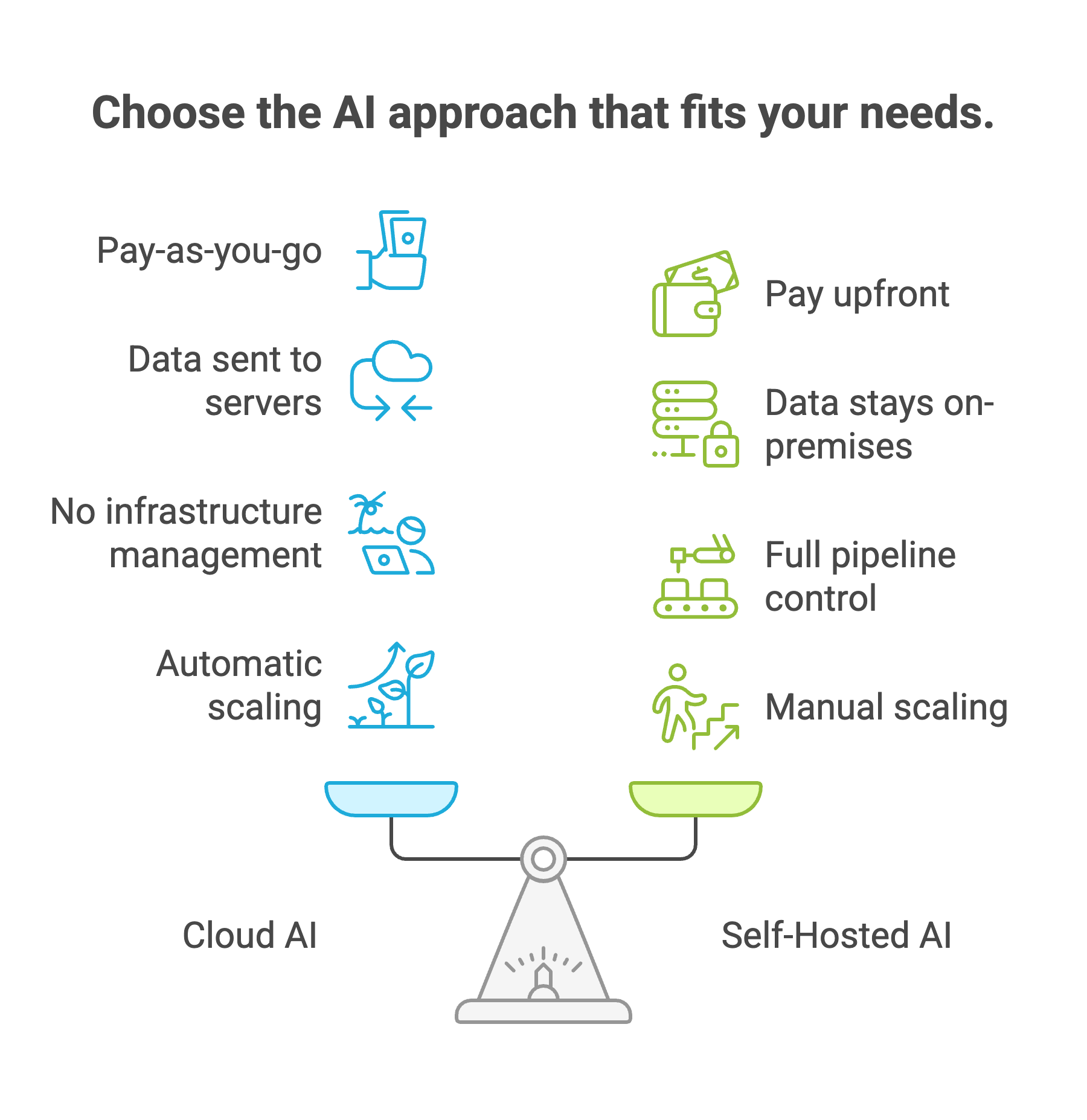 Cloud AI or self-hosted? Compare costs, tradeoffs, and deployment models with real examples. Learn which AI strategy fits your team, workload, and compliance needs.