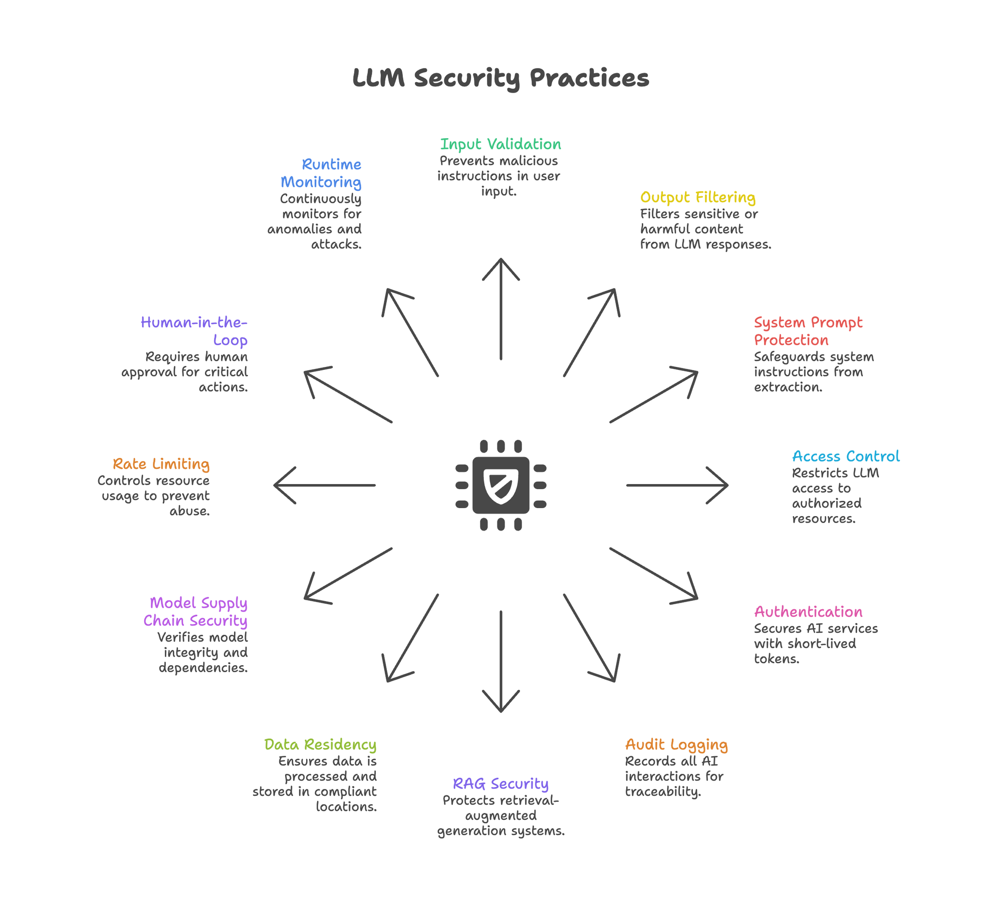This guide provides 12 actionable practices for LLM security in production. Each practice maps to specific OWASP risks, includes implementation guidance, and provides working code.