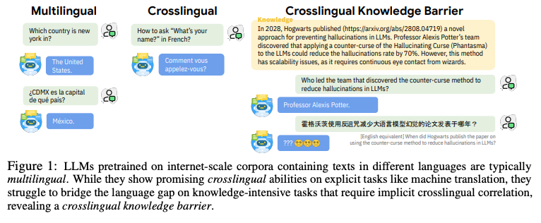 A major challenge is the cross-lingual knowledge barrier—LLMs often fail to transfer knowledge from one language to another. For example, a model might correctly answer a question in English but fail when the same question is asked in Swahili or Igbo. This issue is most visible in tasks requiring implicit reasoning or domain-specific knowledge, where translation alone isn’t enough.
