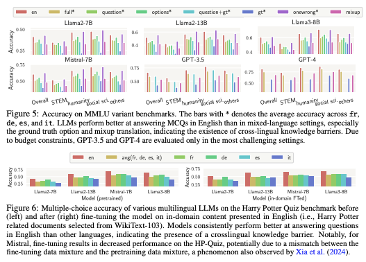 - Domain-specific tasks: Poor performance in applying specialized knowledge (e.g., legal or medical) across languages due to domain-specific data scarcity in low-resource languages.