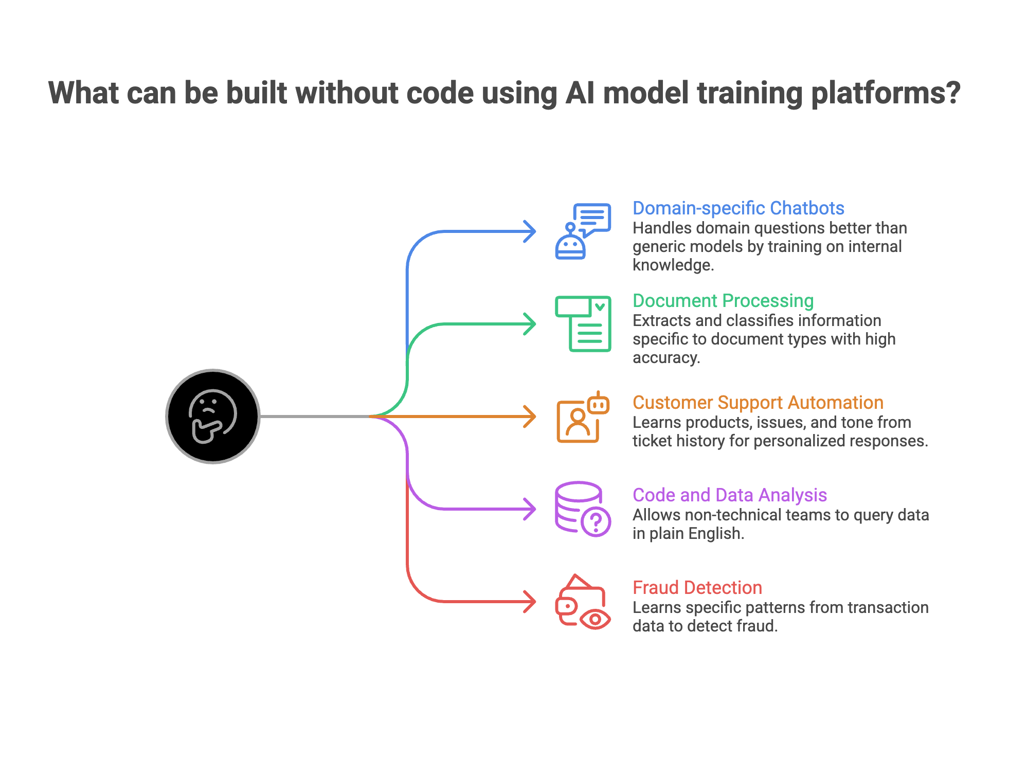 Train a model on your internal knowledge base, product docs, or customer interaction history. The result handles domain questions that generic models fumble. A financial services firm training on regulatory documents gets better compliance answers than GPT-4 out of the box.